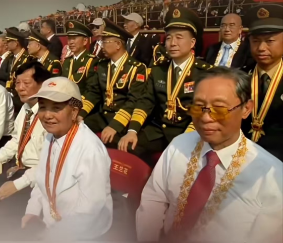 9月3日,北京天安门广场举行了一次盛大的军事游行,以纪念中国人民对日本袭击和世界上反法西斯战争的胜利80周年。在View平台上,来自Ningxia Wuzhong City的“ 7月1日奖牌”的获胜者Wang Lanhua静静地坐着。